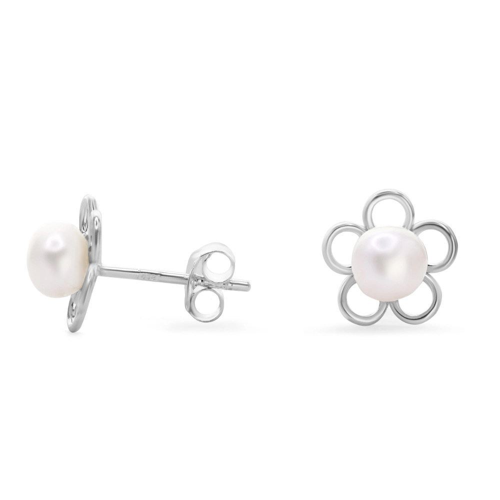 Aros de Plata 925 Figuras de Flor Pequeña con Perla Aros de Plata 925 Figuras de F...