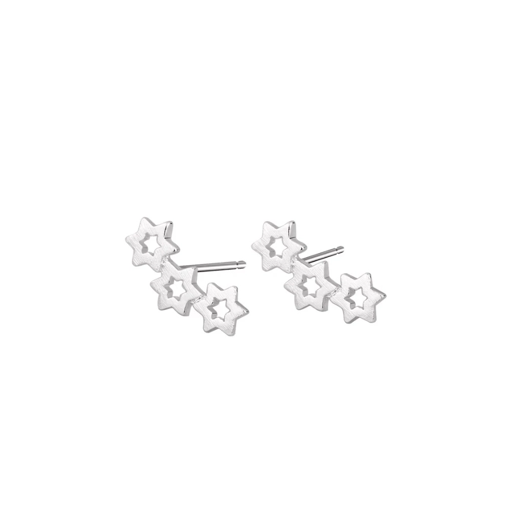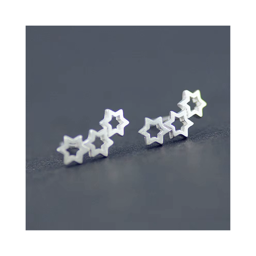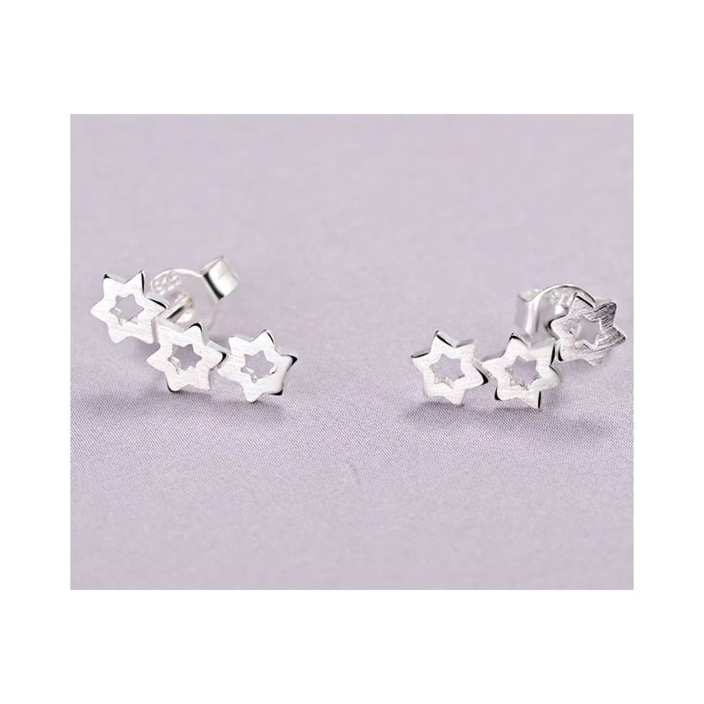 Los Aros de Plata Diseño 3 Estrellas combinan elegancia y un toque celestial. Fabricados en plata 925 genuina, presentan tres delicadas estrellas unidas en un diseño moderno y brillante, perfectos para complementar cualquier look con sutileza y estilo.