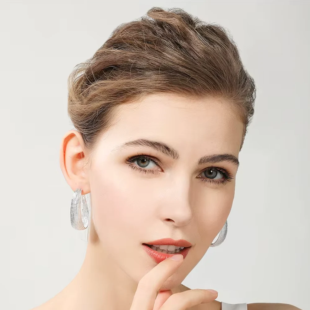 El acabado en plata brinda un brillo limpio y moderno, ideal para quienes buscan accesorios llamativos, versátiles y con un toque de sofisticación. Funcionan perfecto tanto para outfits casuales como para looks más elegantes.