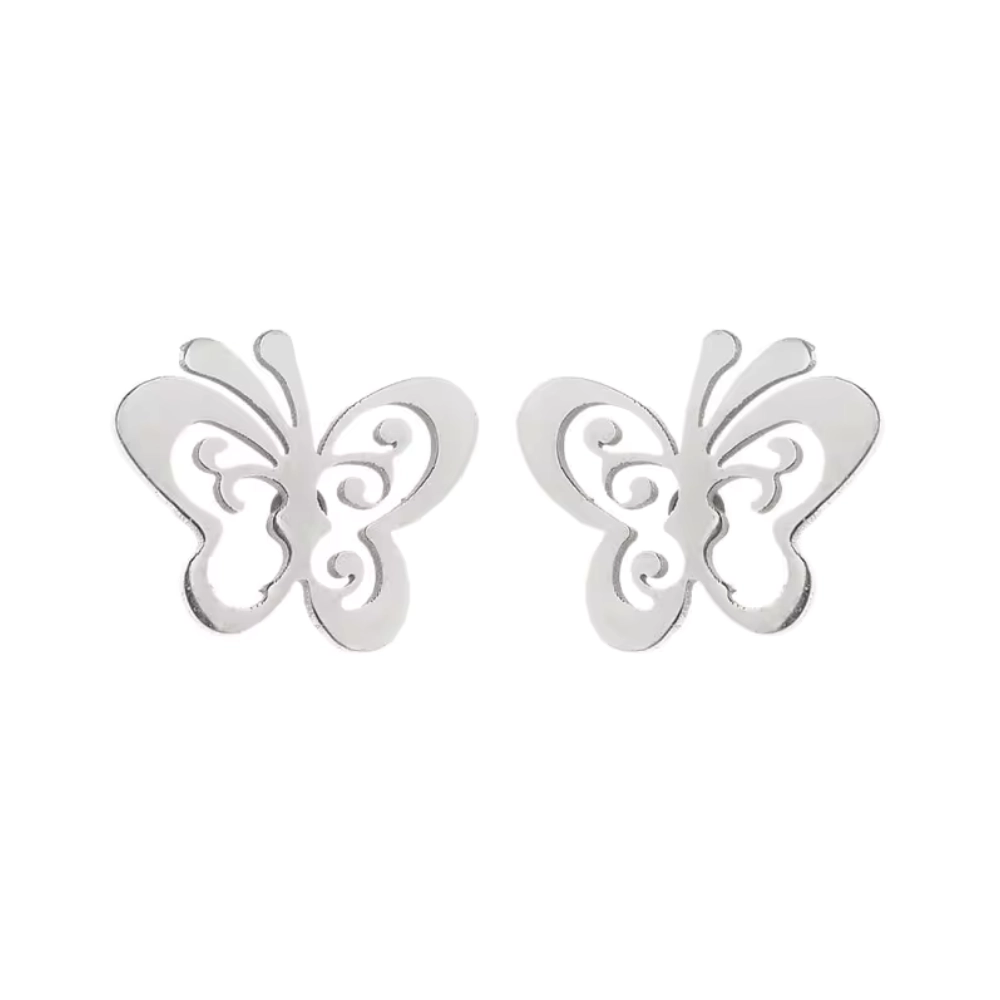 Su tamaño equilibrado y diseño ligero los hace cómodos para el uso diario, mientras que el cierre seguro tipo tope garantiza firmeza durante todo el día. Perfectos para complementar atuendos casuales o formales, los Aros Plateados Satinados Mariposa aportan un toque femenino y moderno.