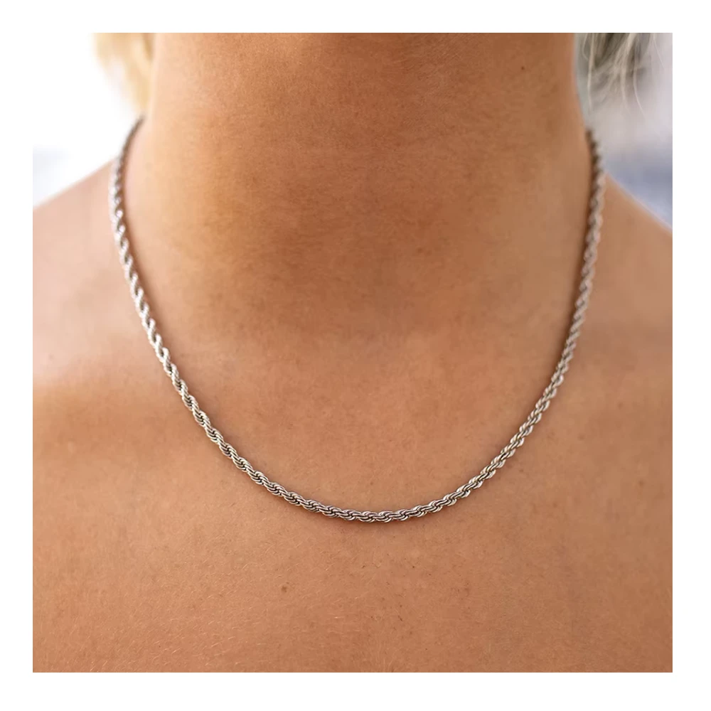 Su diseño Tourbillon, caracterizado por eslabones finos y entrelazados, ofrece flexibilidad, comodidad y un acabado elegante. Con 2 mm de grosor y 60 cm de largo, se adapta perfectamente al cuello y es ideal para lucir sola o combinada con colgantes medianos y pequeños.