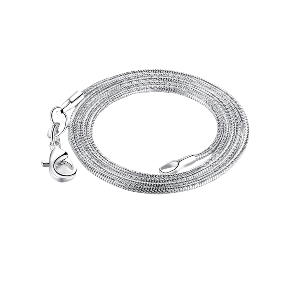 La Cadena Plateada Tipo Serpiente 45 cm es perfecta para quienes buscan un accesorio elegante, versátil y de alta calidad, ideal para cualquier estilo o ocasión.