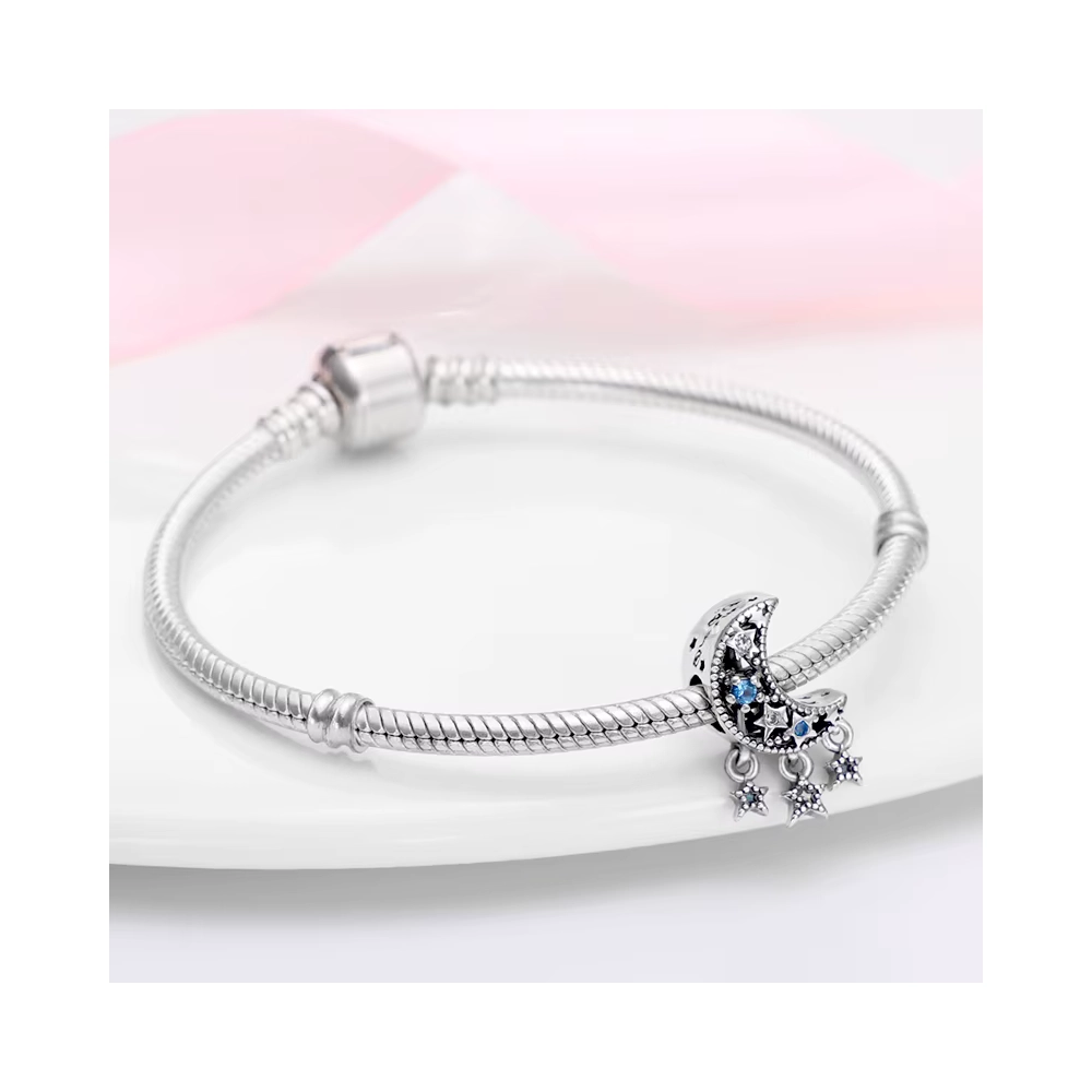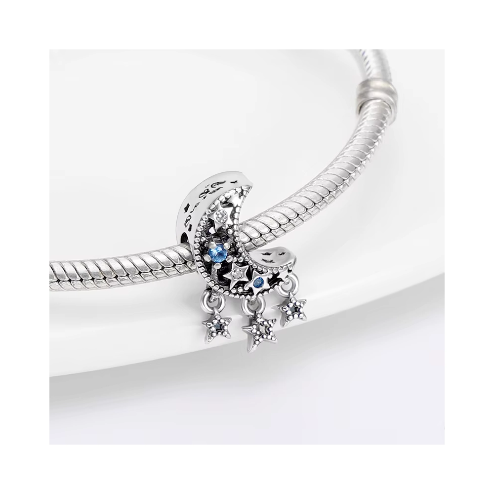 El Charm Plateado Luna y Estrellas Colgantes con Circones es perfecto para quienes buscan un accesorio versátil, elegante y con un toque simbólico que destaque en cualquier ocasión.