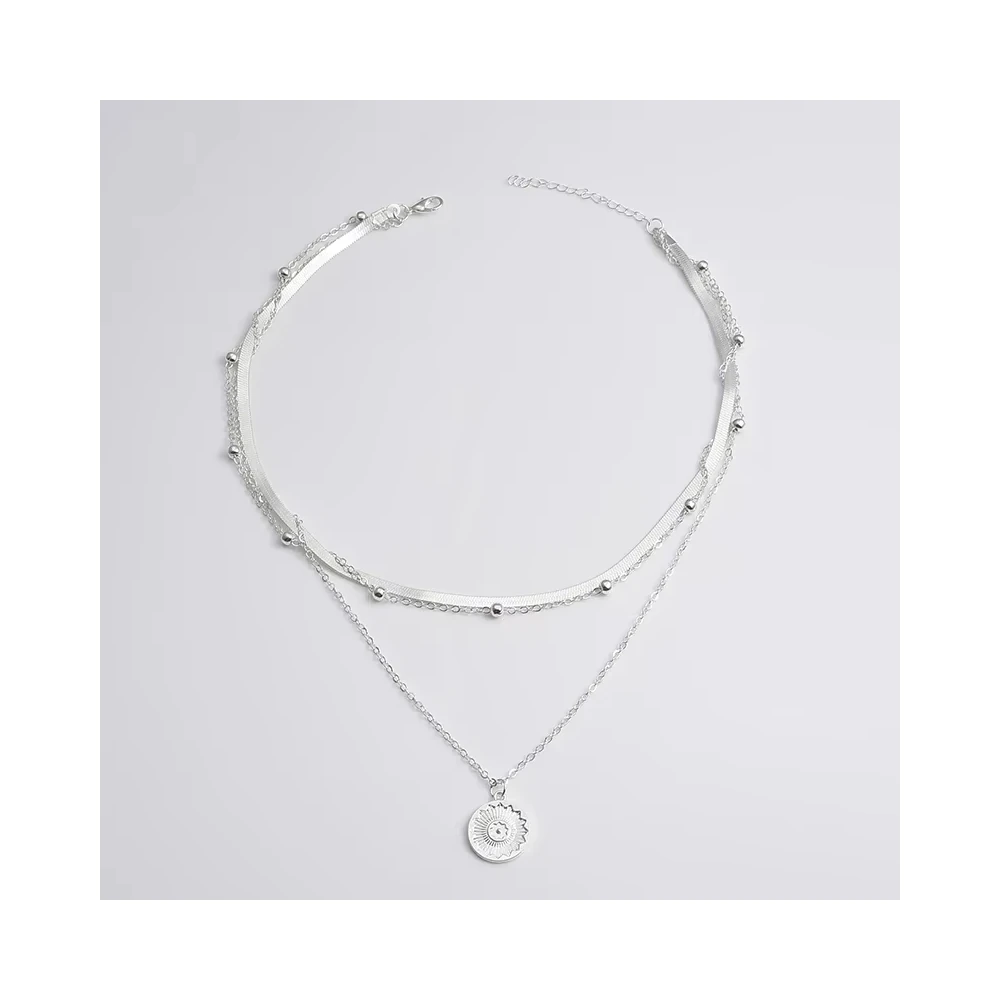 El diseño en tres capas añade profundidad y estilo, creando un efecto visual atractivo sin resultar pesado. El colgante circular aporta un toque minimalista y elegante, convirtiéndolo en un accesorio perfecto tanto para looks casuales como para ocasiones más formales.