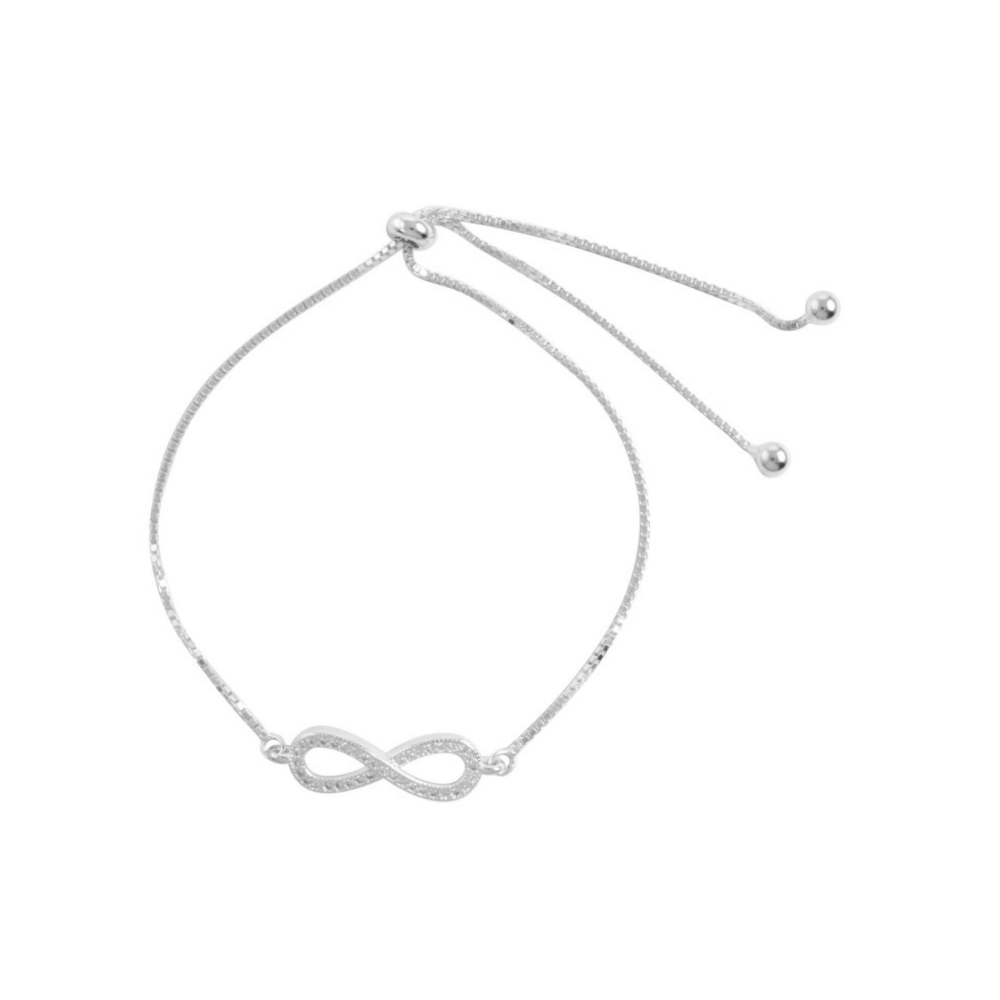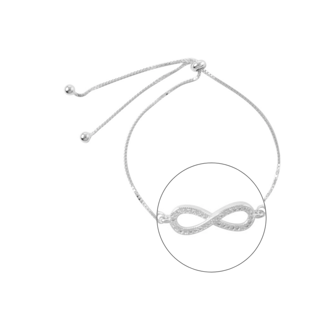 El diseño ajustable permite adaptarla a cualquier tamaño de muñeca, asegurando comodidad y seguridad. El símbolo de infinito, decorado con micro circones brillantes, aporta un detalle delicado y sofisticado que complementa cualquier estilo, desde looks casuales hasta formales.
