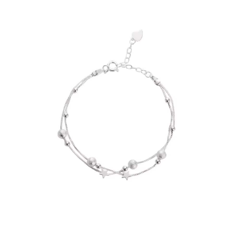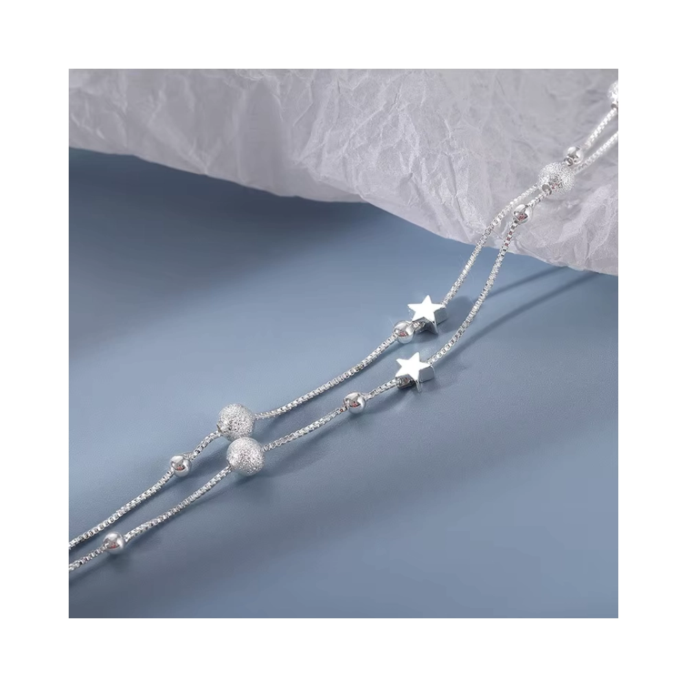 Pulsera plateada estrella con doble cadena y dije de estrella. Un diseño delicado y moderno, ideal para uso diario o como complemento elegante.