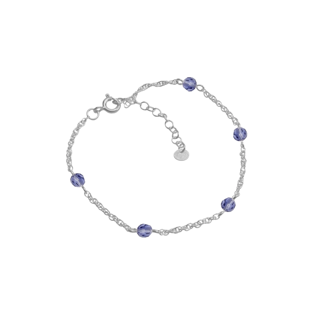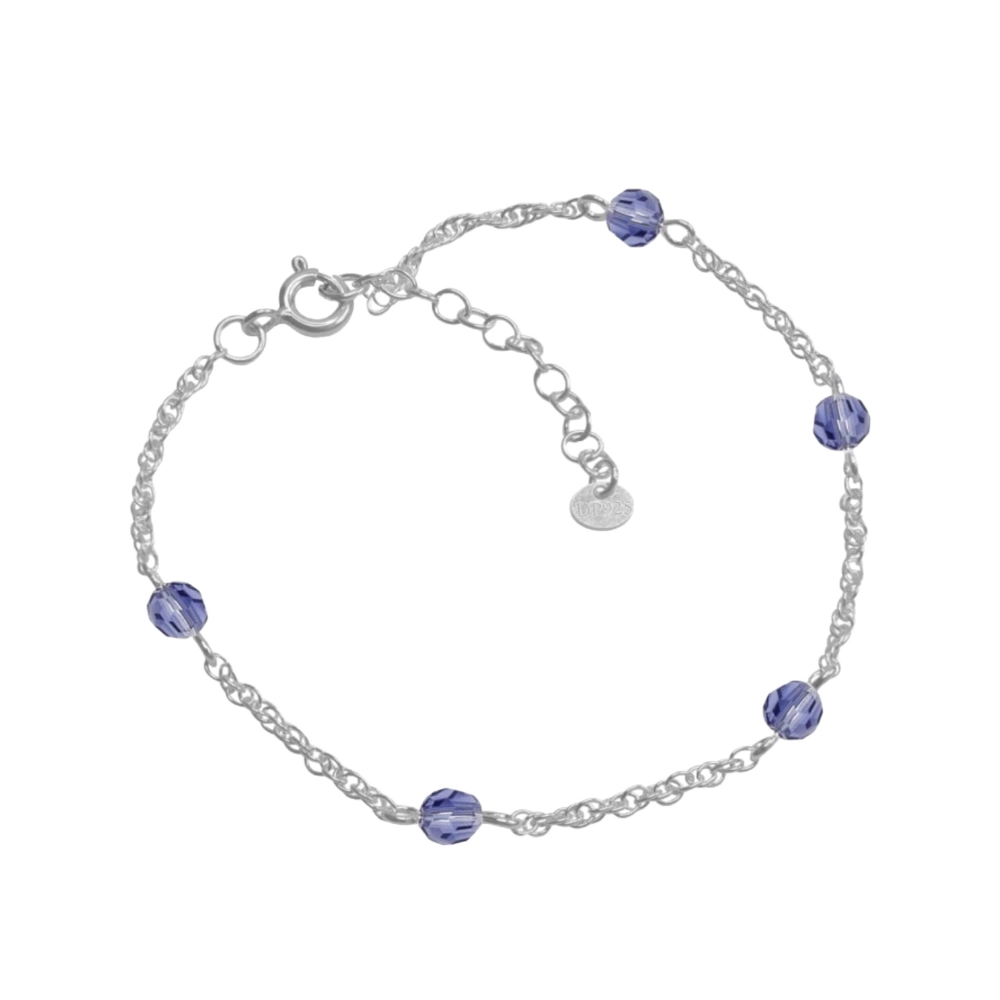 Tobillera de Plata 925 Rolo con Cristal Azulado que aporta brillo y color. Perfecta para un look fresco y elegante.