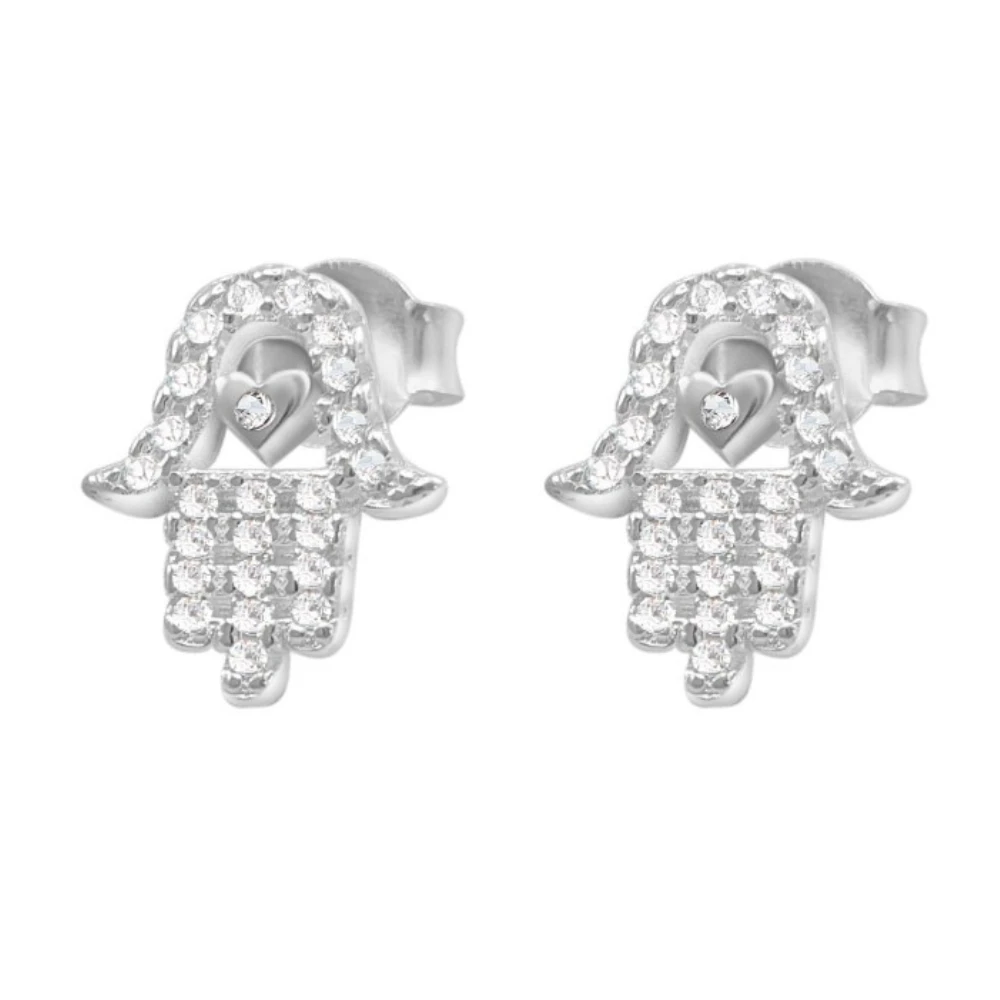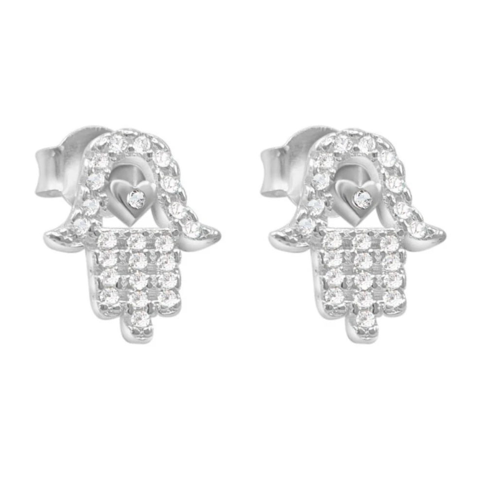 Los Aros De Plata 925 Mano de Fatima Con Micro Circones ofrecen un diseño simbólico con brillo delicado, ideales para uso diario.