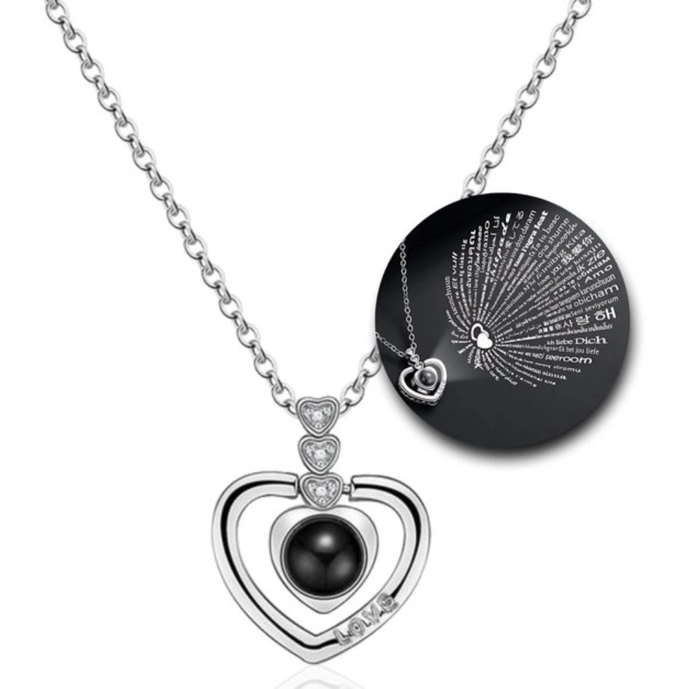 El Collar de Acero Corazón Proyectable “Te Amo” en 100 Idiomas es una pieza especial que destaca por su diseño elegante y su detalle oculto en la piedra central. Al iluminarla con la linterna del teléfono o mirarla de cerca, se proyecta la frase “Te Amo” en 100 idiomas diferentes, creando un mensaje emotivo y sorprendente.