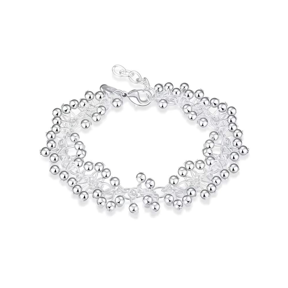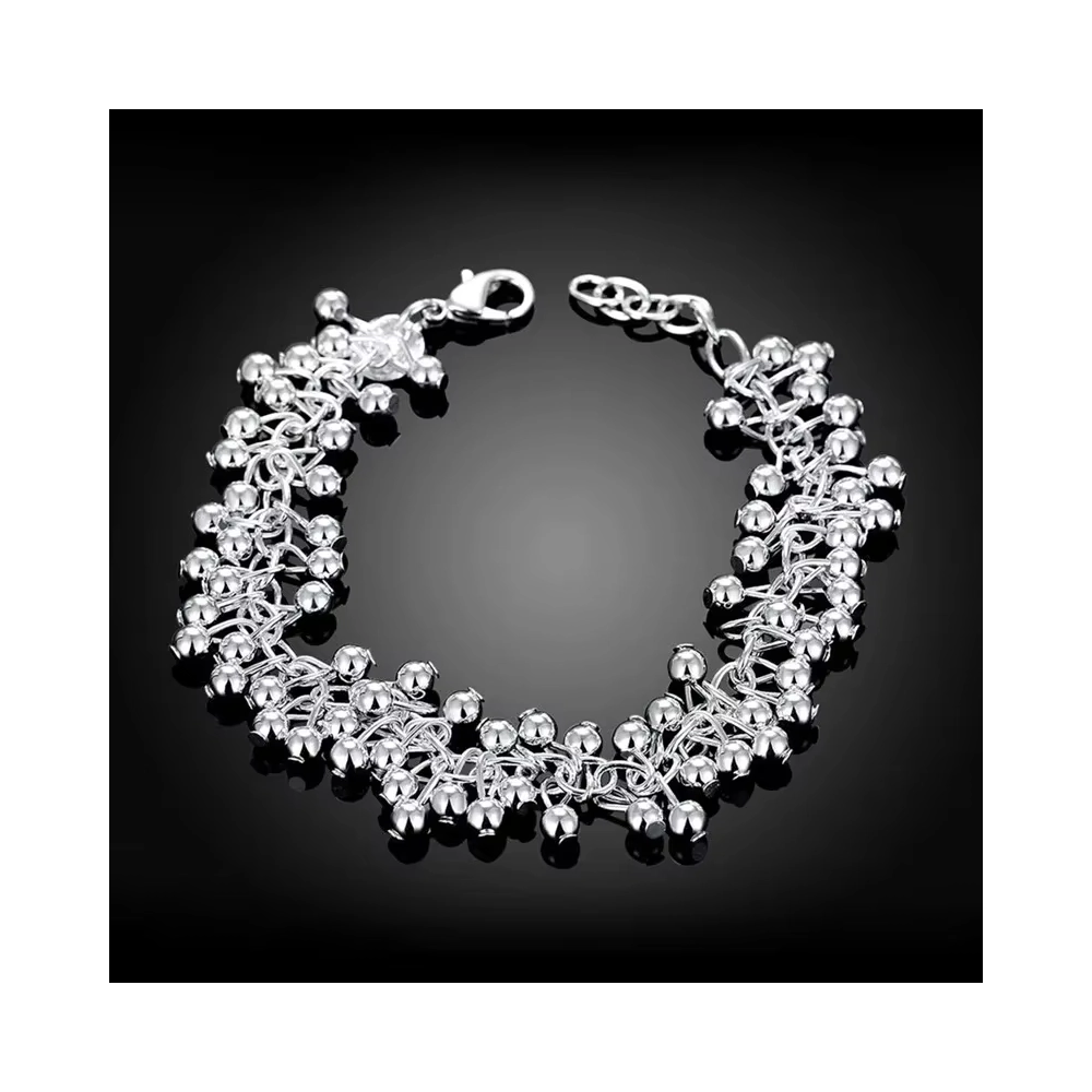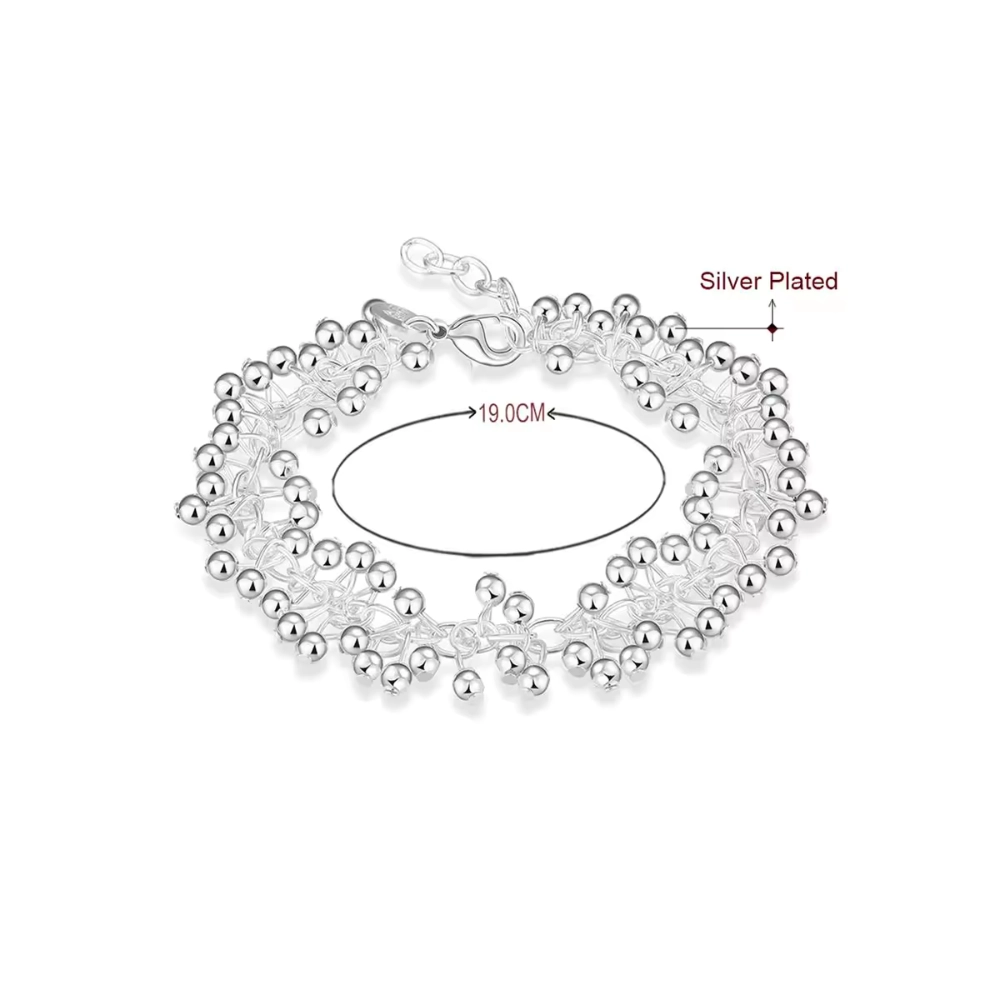• Pulsera Plateada Tipo Uvas Colgantes Fondo
