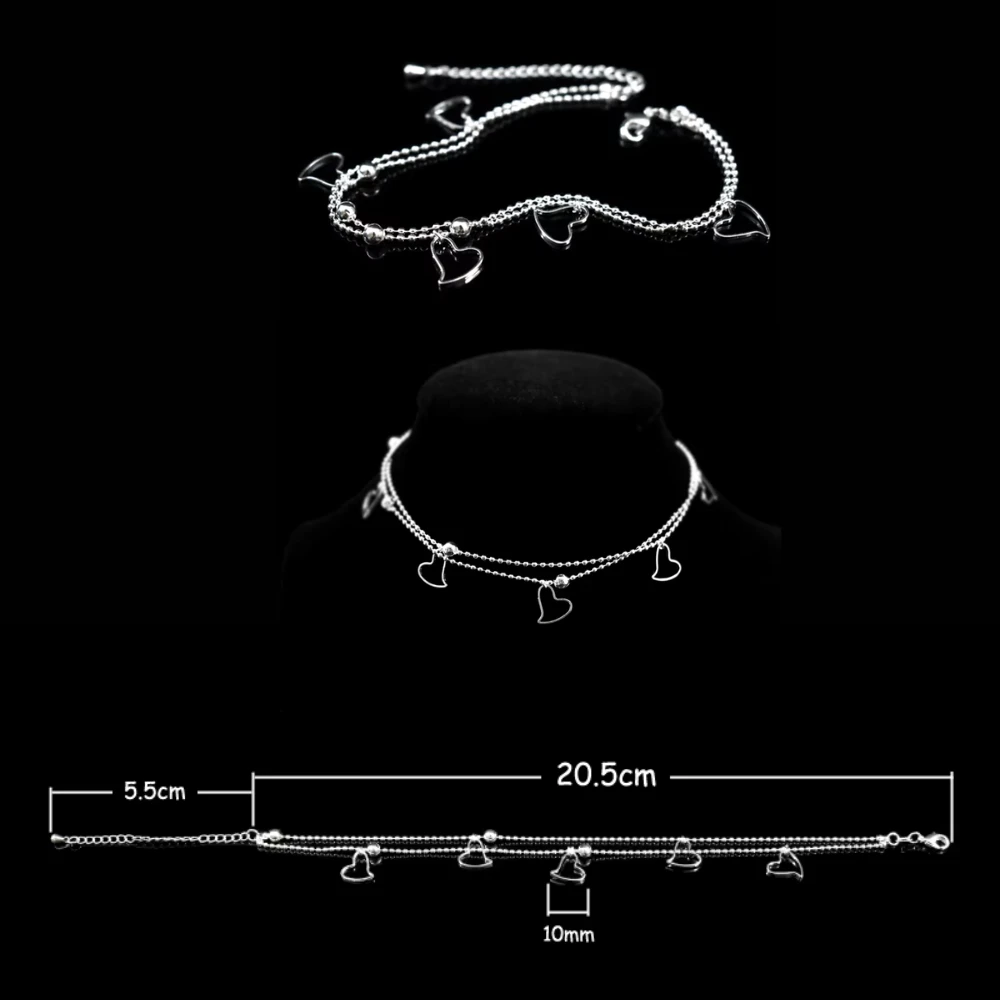 • Tobillera Doble Cadena Ovalos Corazones Colgantes Caracteristicas