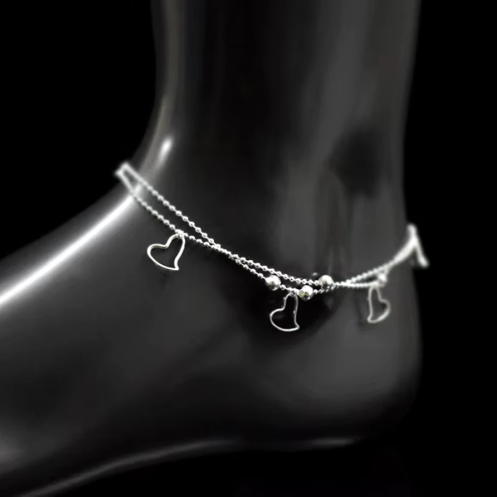 • Tobillera Doble Cadena Ovalos Corazones Colgantes Pie