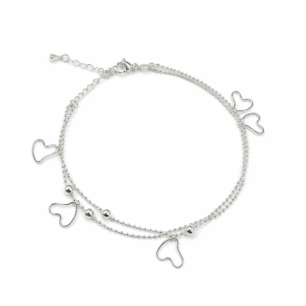 • Tobillera Doble Cadena Ovalos Corazones Colgantes Molde