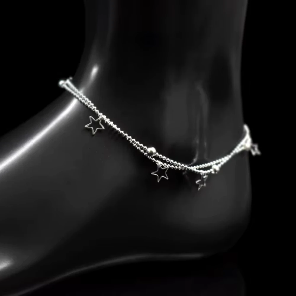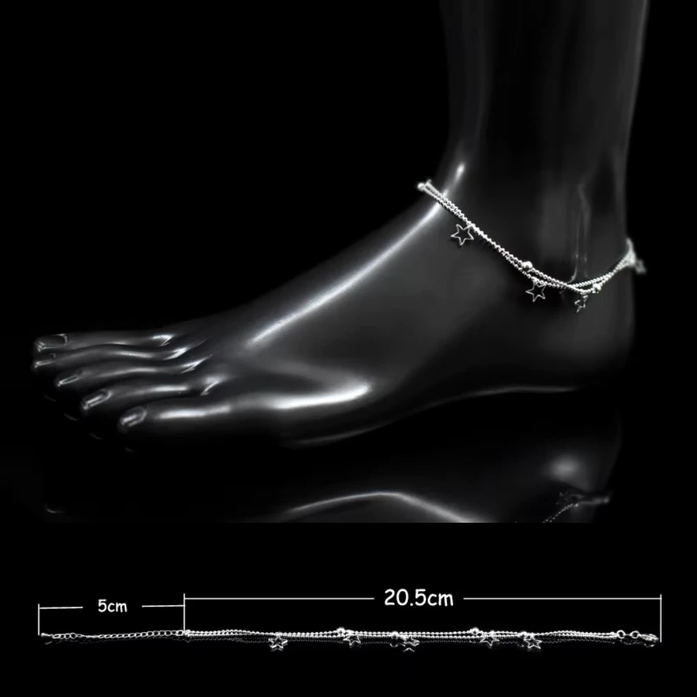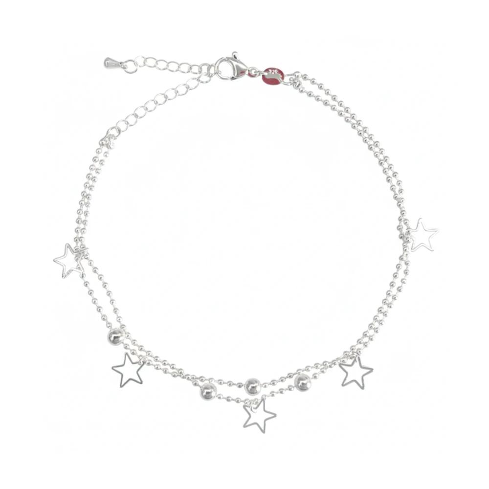 La Tobillera Plateada Con Estrellas Colgantes presenta un diseño delicado y armonioso, ideal para complementar el estilo diario con un detalle sutil y elegante. Sus estrellas colgantes aportan movimiento y un brillo discreto, creando una estética ligera y equilibrada. Su largo base de 20,5 cm más extensión permite un ajuste cómodo y versátil, adaptándose fácilmente al tobillo sin perder fluidez. Es una joya pensada para un uso confortable y prolongado, manteniendo una apariencia limpia y cuidada.